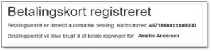 Bemærk: Ved registrering af betalingskort trækkes det skyldige beløb på forfaldsdato, og altså ikke med det samme.
