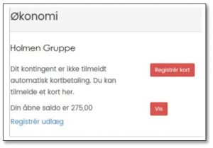 Du kan også registrere dit kreditkort ved at logge dig ind i Medlemsservice. På Min side er der et felt Økonomi. Klik på Registrer kort og du vil komme til samme procedure som beskrevet ovenfor